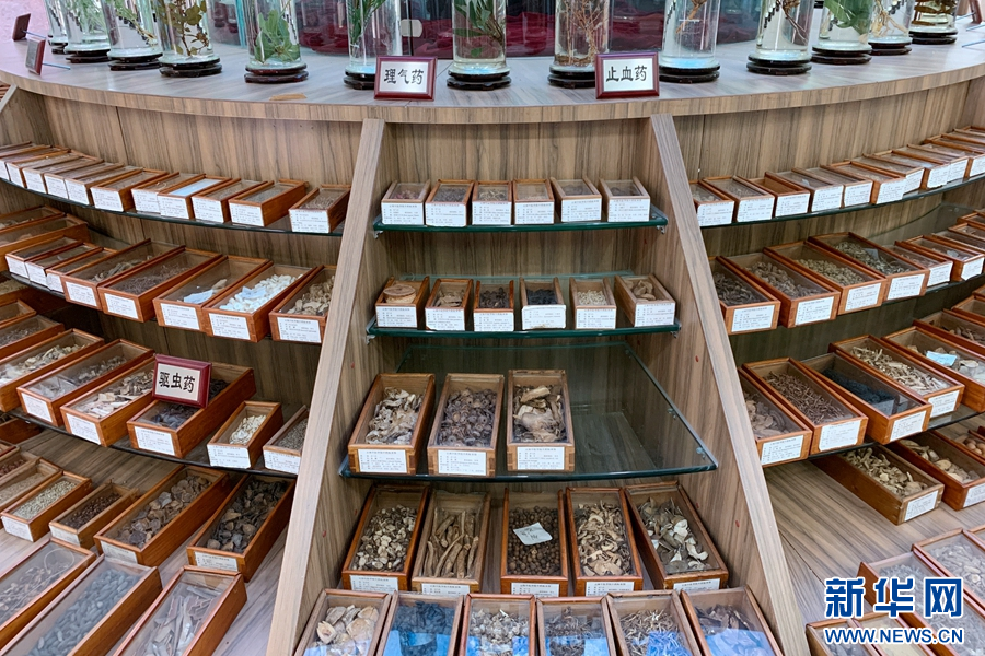 云南省中医药民族医药博物馆内展出的各类中草药(资料图)。新华网发(王奇旺 摄)