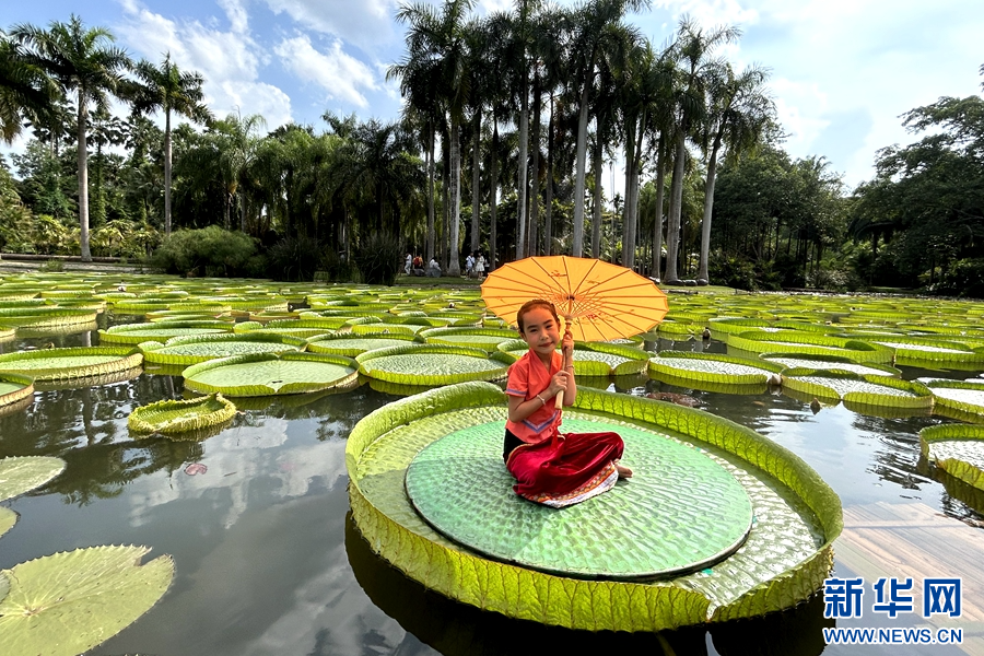 “一叶当舟谁敢比?凌波驭浪颂王莲。”近日,中国科学院西双版纳热带植物园中的王莲进入最佳观赏期,慕名而来的游客纷纷到王莲池拍照留念,体验一叶当舟的乐趣。