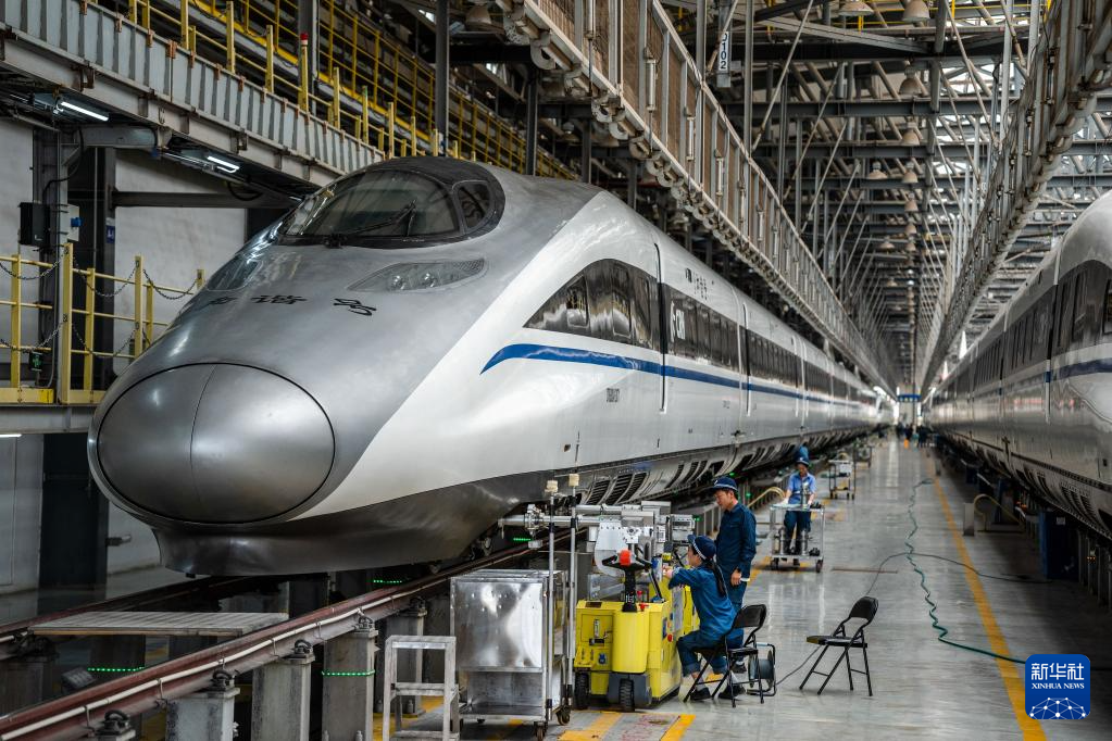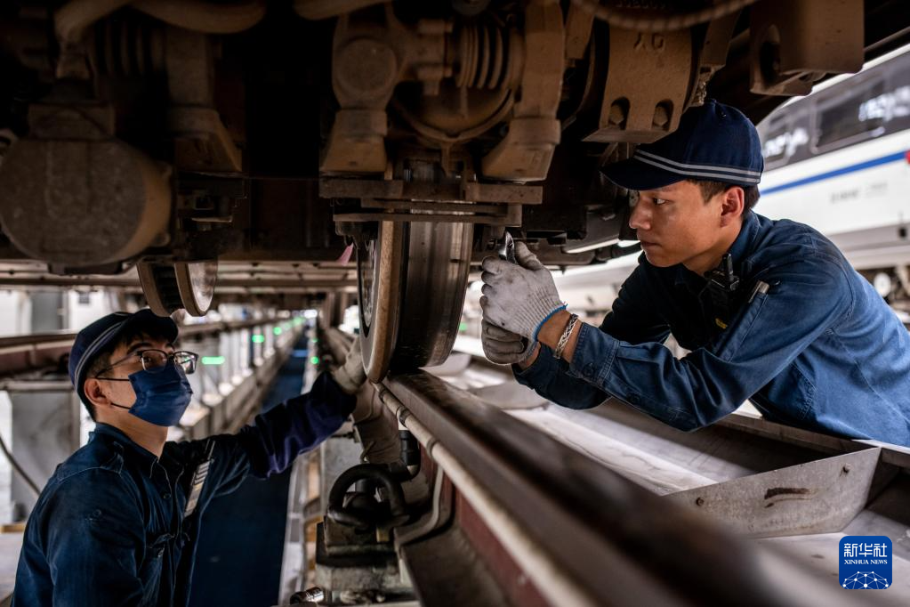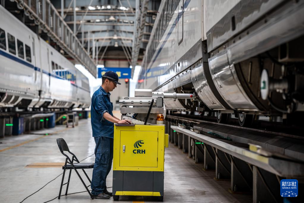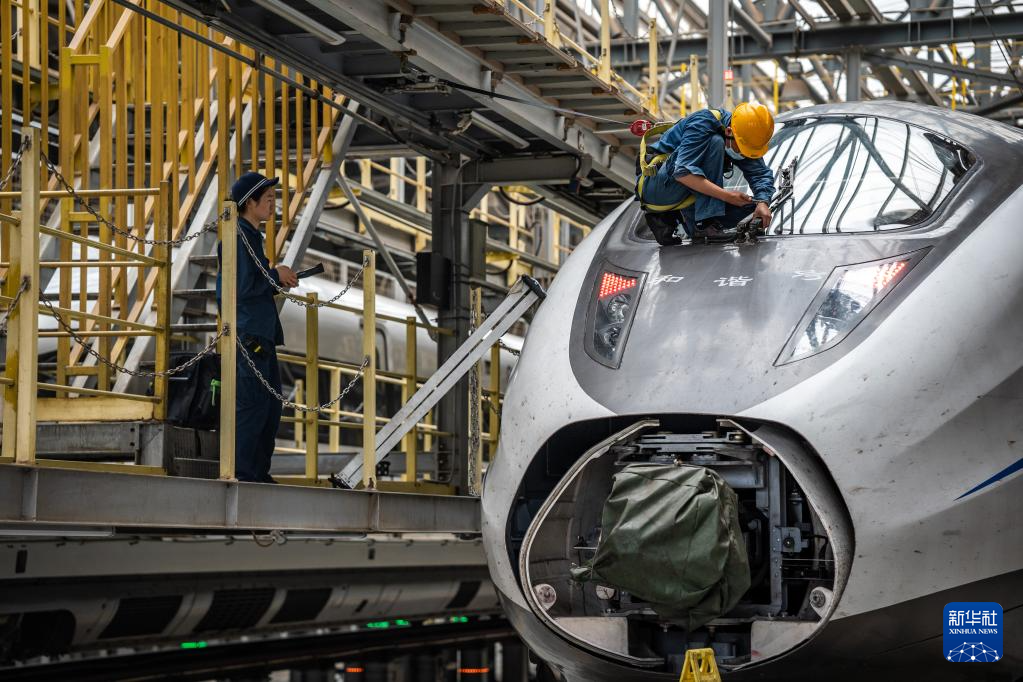 暑运期间,中国铁路昆明局集团有限公司昆明车辆段的工作人员加大对动车的检修保养力度,确保每一组动车组“健康”上线,守护旅客平安出行。
