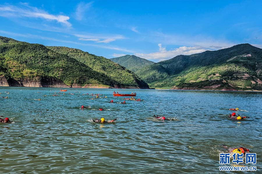 森林消防员进行武装泅渡训练(6月28日摄)。新华网发(王志华 摄)