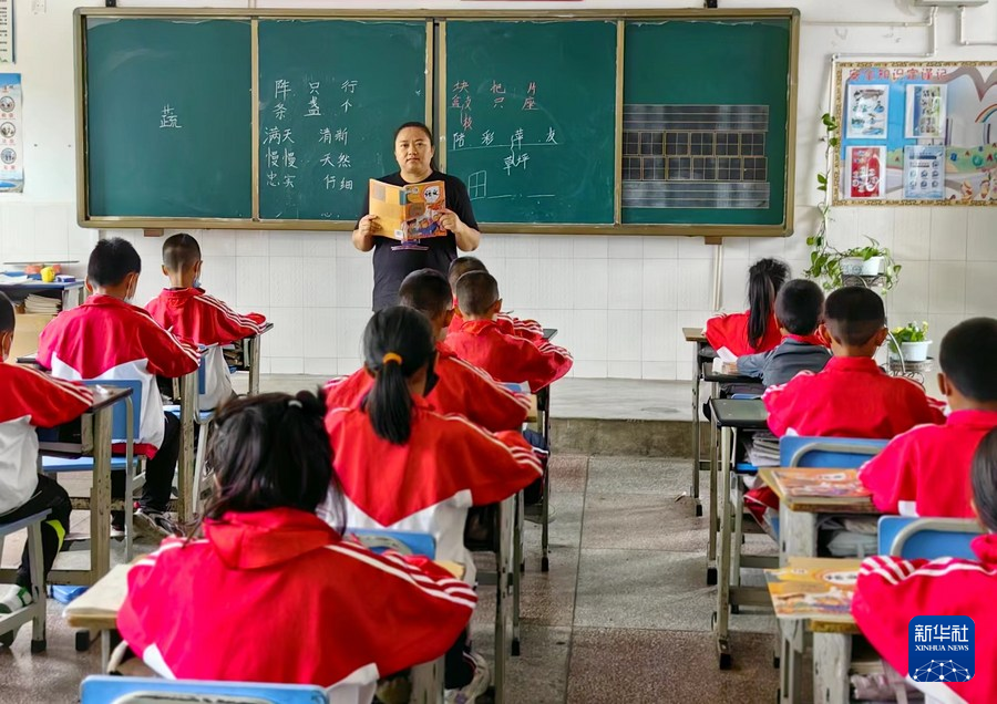 6月26日,陈元春在沧源县勐董镇中心完小给学生们上课。新华社发