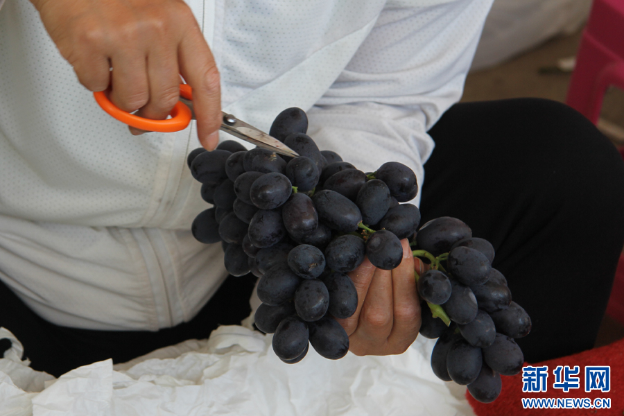 紫翠无核葡萄(6月25日摄)。新华网发(王琳 摄)