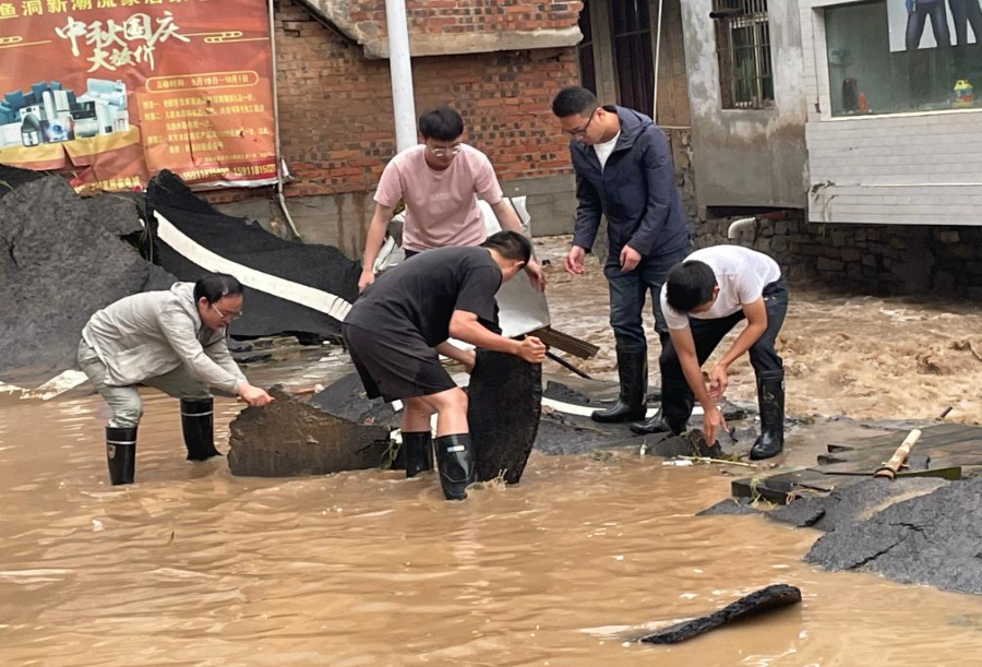 7月2日,云南省昭通市镇雄县组织干部群众在鱼洞乡开展防汛工作。(新华社发)