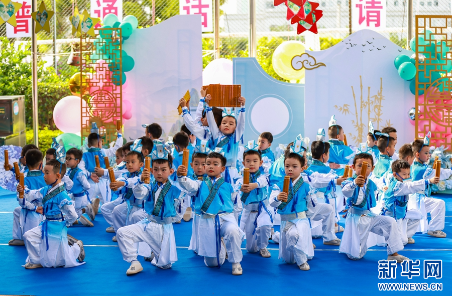 小朋友们将《弟子规》融入表演(摄于7月14日)。新华网发(陶家淇 摄)