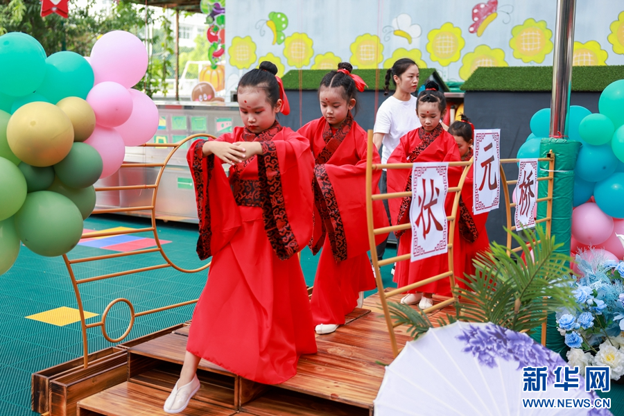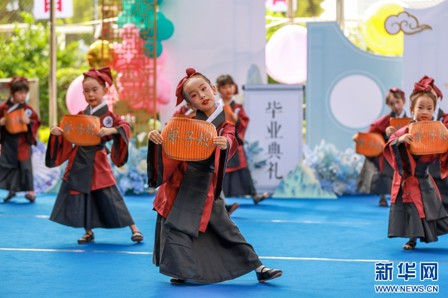 7月14日,云南省红河哈尼族彝族自治州开远市第二幼儿园为即将毕业的小朋友们举行了传统“开笔礼”仪式,通过朱砂启智、击鼓明志、启蒙描红等环节,让即将步入小学的孩子们体验传统文化,“破蒙启智,人生始立”,为未来的求学生涯树立一个有意义的起点。(刘雅龙)