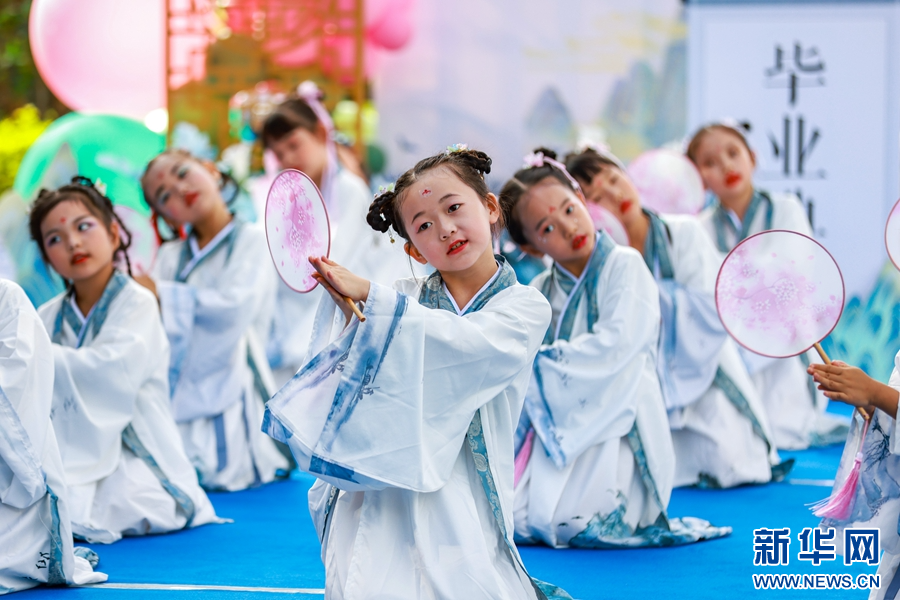 小朋友们表演国风舞蹈(摄于7月14日)。新华网发(陶家淇 摄)