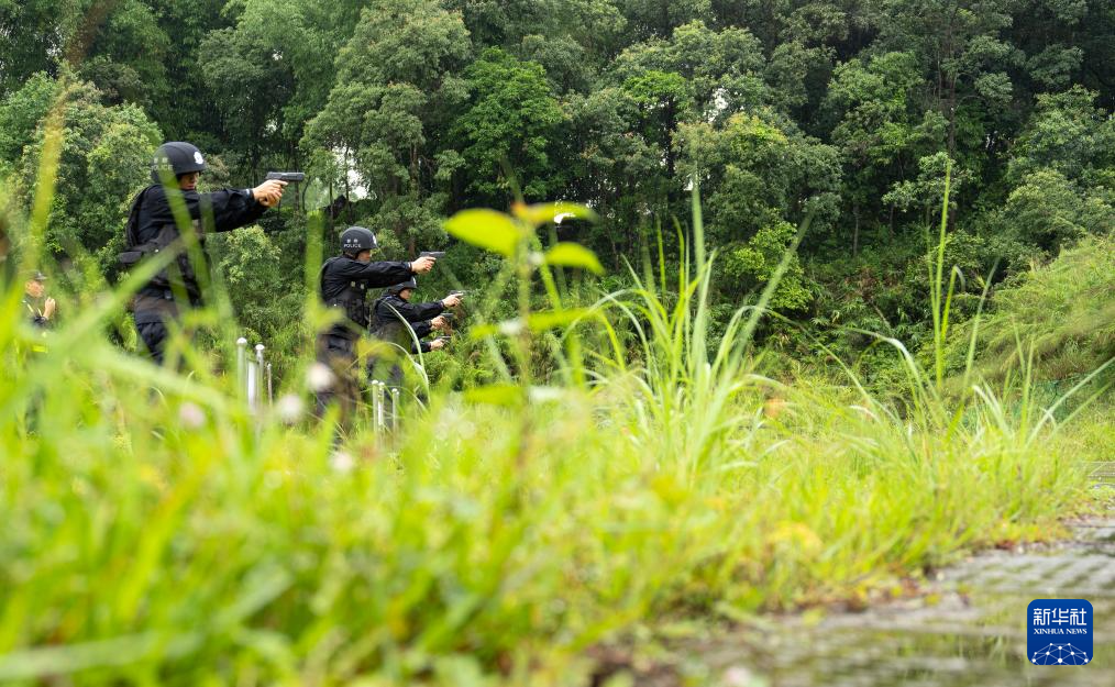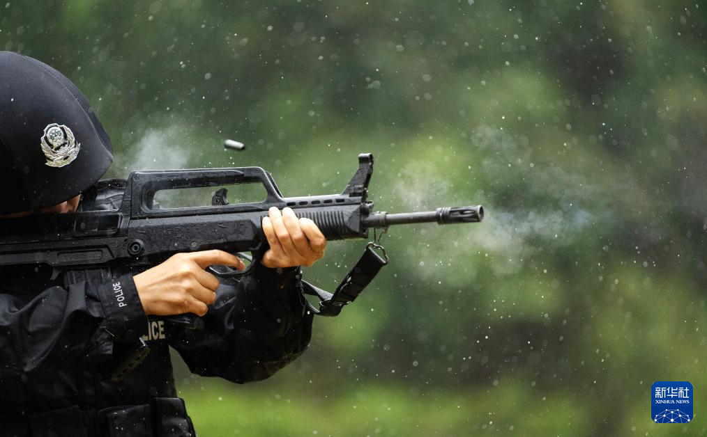 7月13日,尹铭燕(前)和战友在进行射击训练。