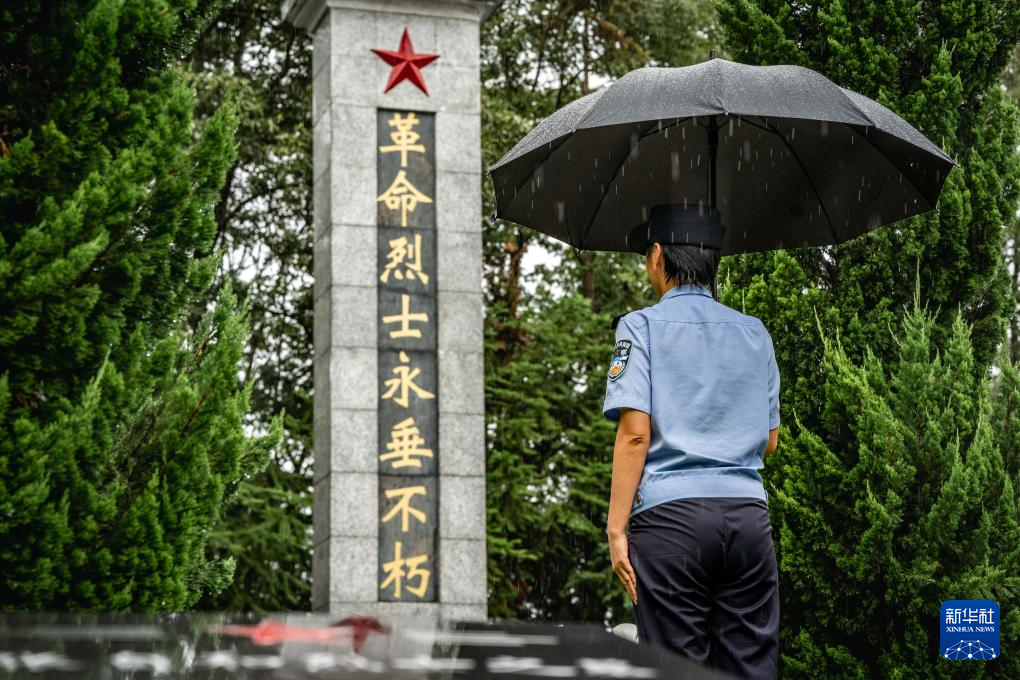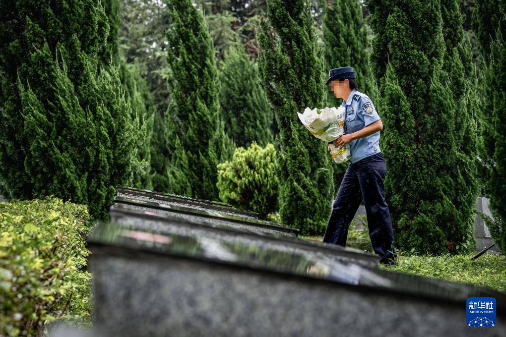 雨中,一把黑伞,一束白花,一身警服的尹铭燕拾级而上,走向云南德宏州陇川县烈士陵园的最高处,那里长眠着她的哥哥尹铭志。