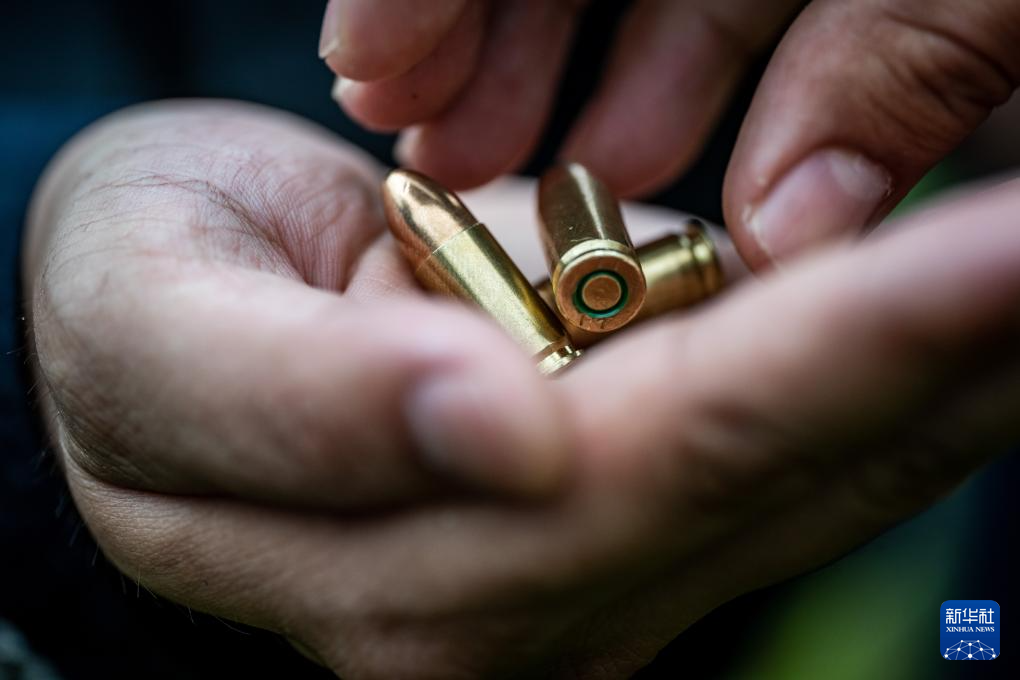7月13日,尹铭燕在射击训练开始前领取子弹。