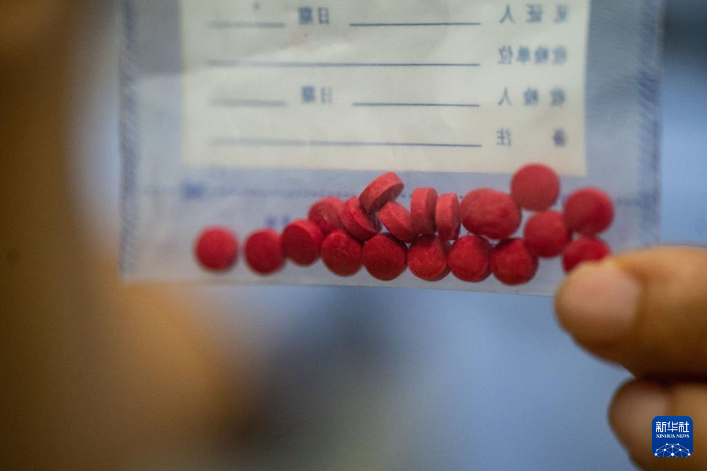 7月13日,尹铭燕展示最近破获的一起特大贩卖运输毒品案中缴获的226.7公斤冰毒中的部分样品。