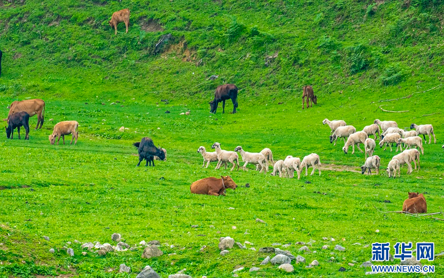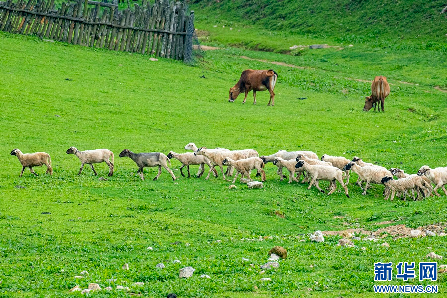 草原上的牛羊(7月8日摄)。新华网发(郭康 摄)