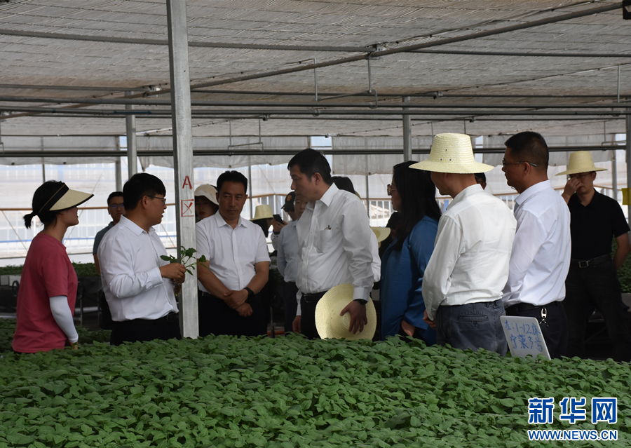 上海市杨浦区党政代表团在宁蒗县马铃薯原原种快繁中心调研(7月13日摄)。新华网发(和润仙 摄)