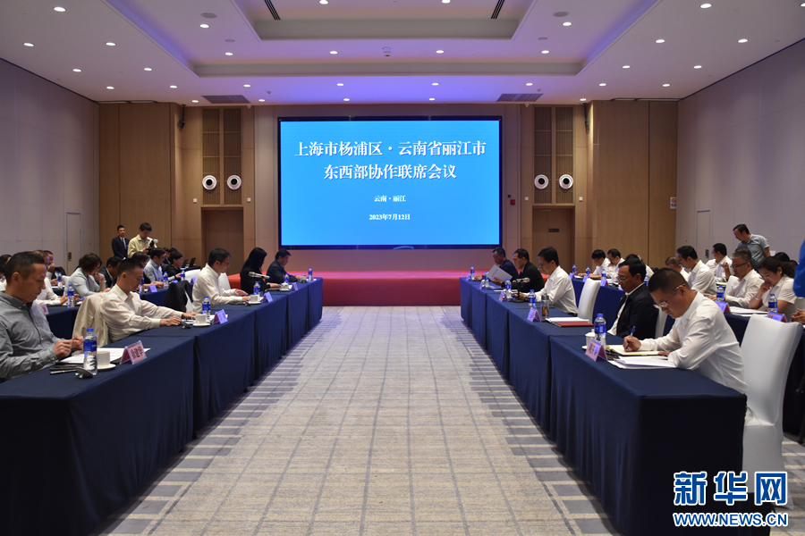 上海市杨浦区·云南省丽江市东西部协作联席会议现场(7月12日摄)。新华网发(和润仙 摄)