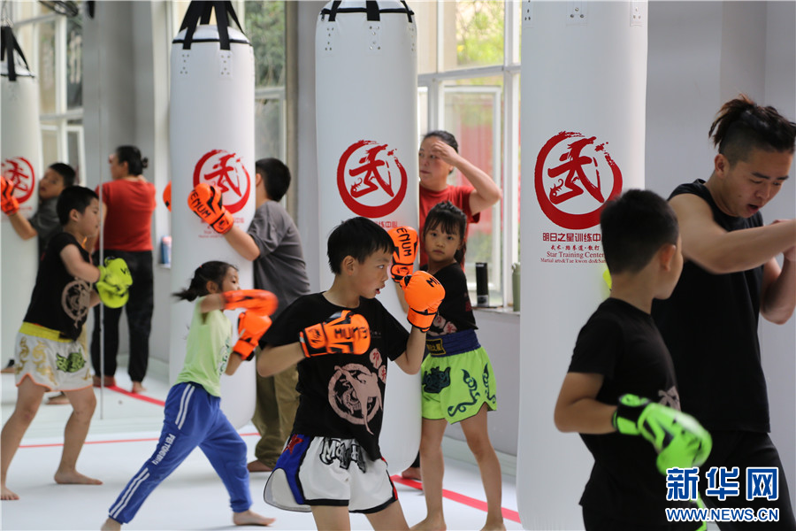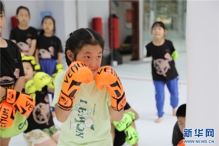 正值暑假,在云南省红河哈尼族彝族自治州蒙自市,孩子们在红河州青少年宫搏击运动馆学习搏击,放松身心,强健体魄,乐享假期生活。新华网发(薛莹莹 摄影报道)