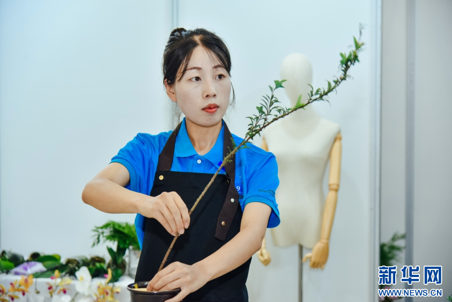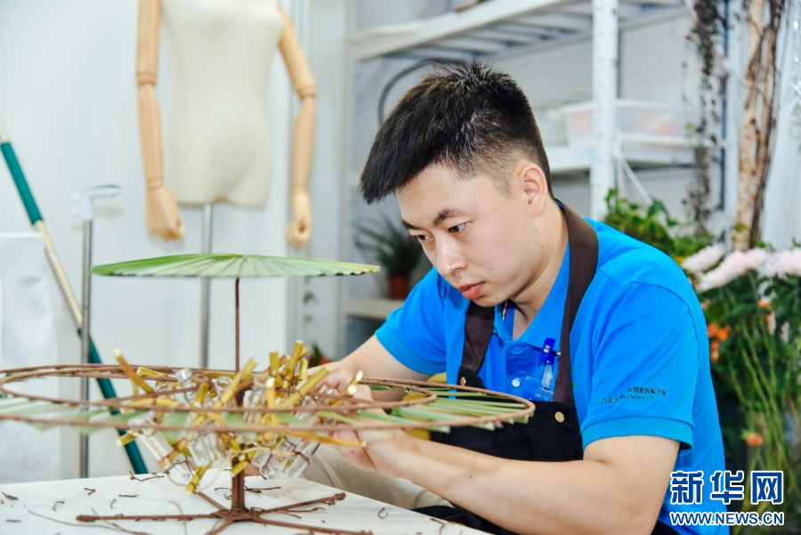 参赛选手制作花艺作品 (7月20日摄)。新华网发(云南林业职业技术学院供图)