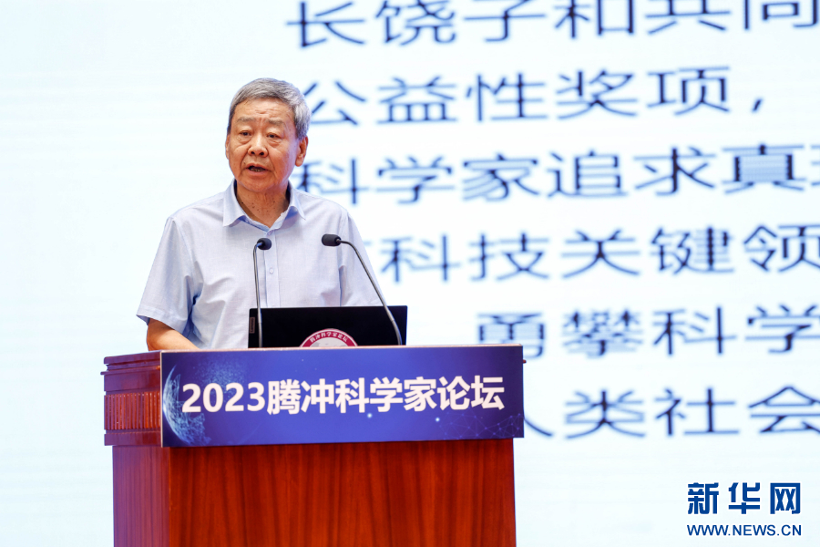 推介会现场,中国科学院院士许智宏宣布成立腾冲科学家论坛学术委员会,并公布成员名单(7月24日摄)。新华网 赵普凡 摄