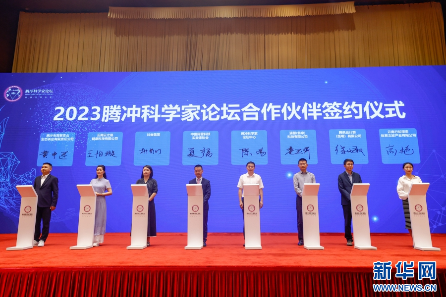推介会现场,2023腾冲科学家论坛合作伙伴集体签约仪式(7月24日摄)。新华网 赵普凡 摄
