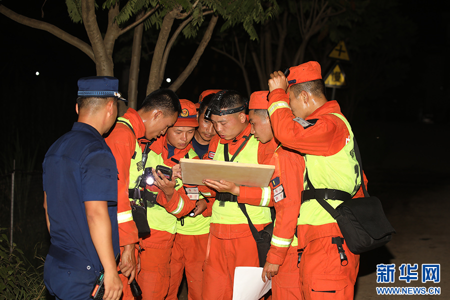 夜间按图行进(摄于7月22日)。新华网发(马开龙 摄)