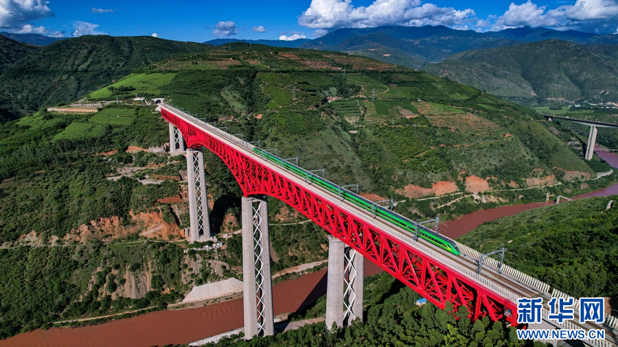 “绿巨人”行驶在中老铁路元江特大桥上(资料图)。新华网发(徐章位 摄)