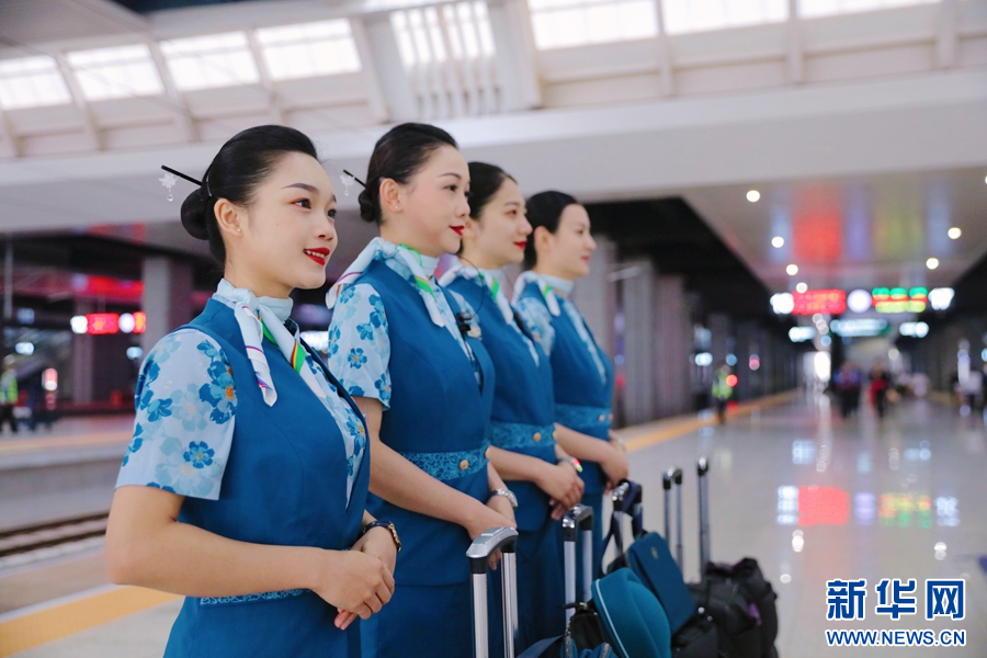 中老铁路国际旅客列车乘务员准备出乘(资料图)。新华网发(杨紫轩 摄)