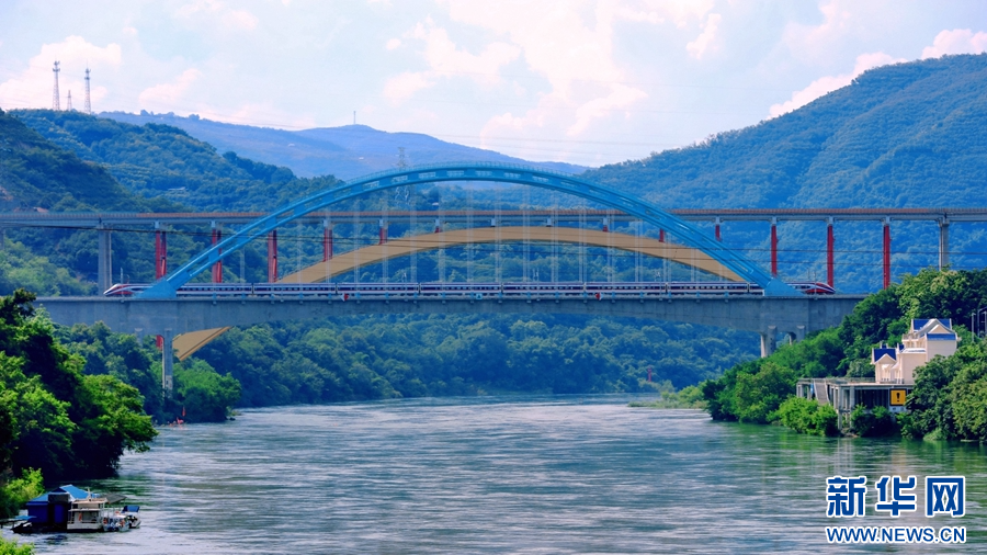 “澜沧号”通过景洪澜沧江特大桥(资料图)。新华网发(杨紫轩 摄)