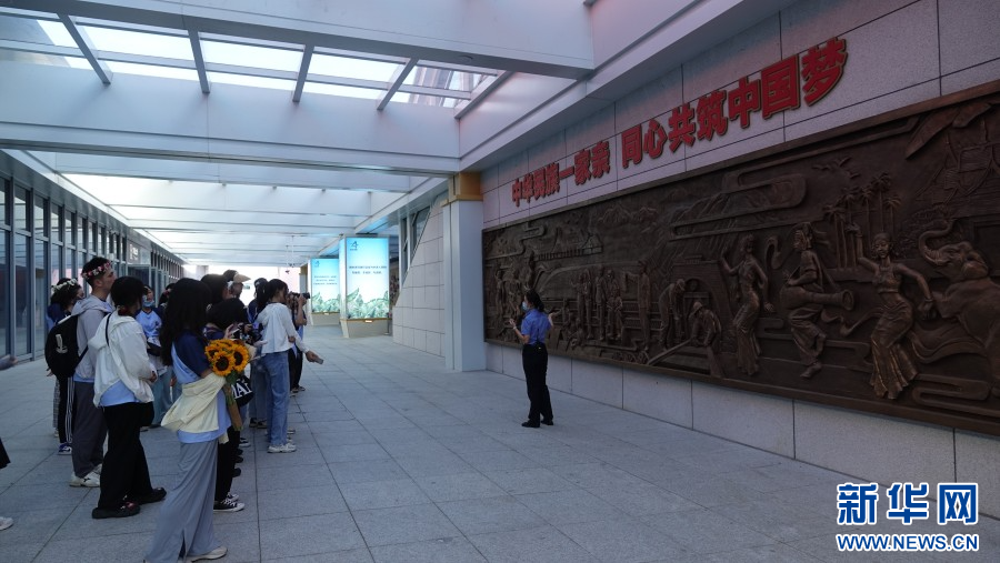 师生们参观热带雨林民族文化博物馆(7月23日摄)。 新华网发(岩罕丙 摄)