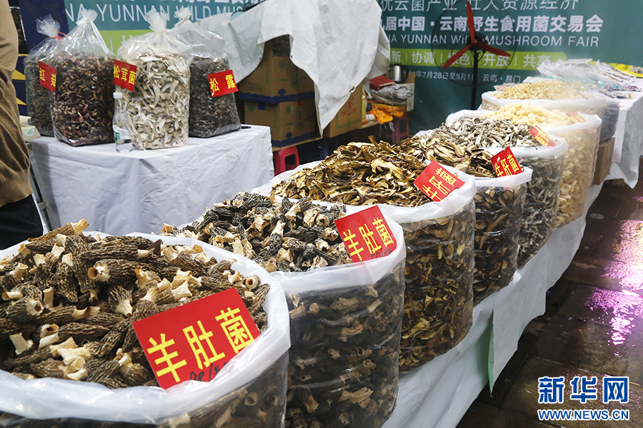菌交会上各类食用菌干(7月28日摄)。新华网发(冯雨钐 摄)