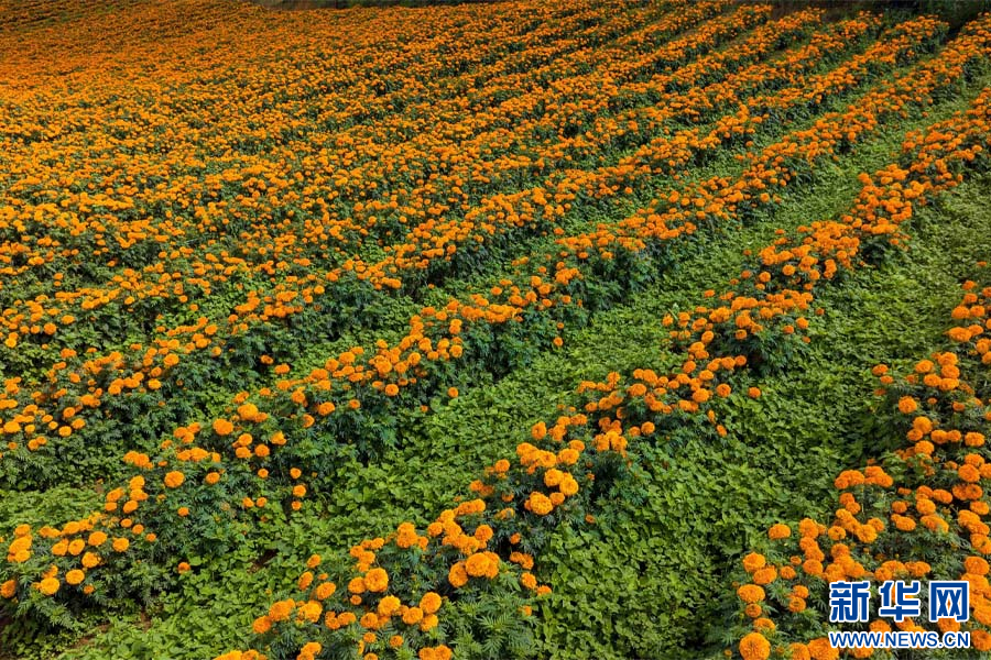 成片盛开的万寿菊(7月24日摄)。新华网发(李星 摄)