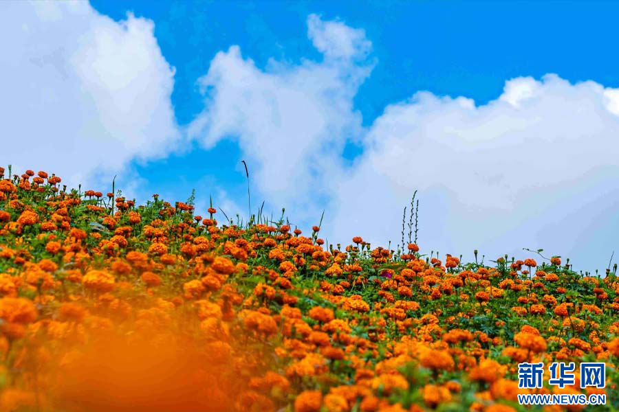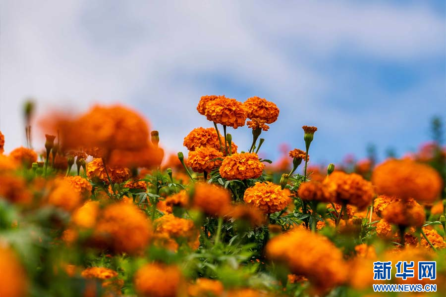 盛开的万寿菊花海(7月24日摄)。新华网发(李星 摄)