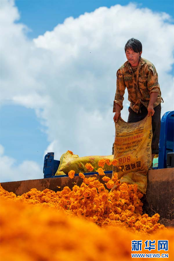 村民采收的万寿菊(7月24日摄)。新华网发(李星 摄)