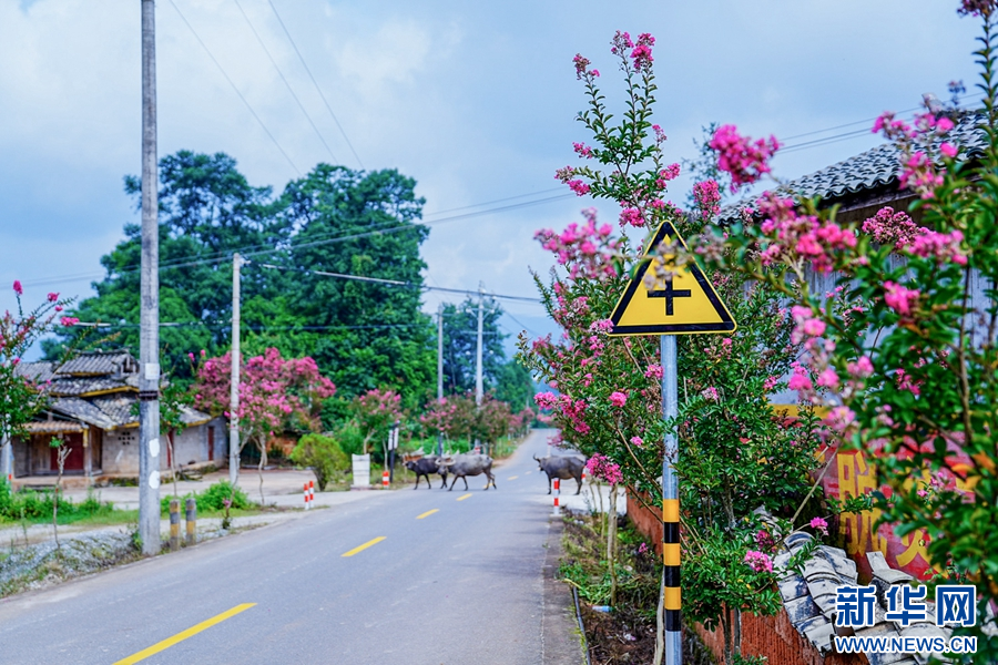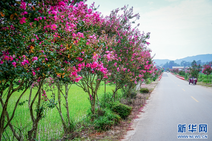 紫薇花开满乡路,绘出美丽风景(8月3日摄)。新华网发(段宗智 摄)