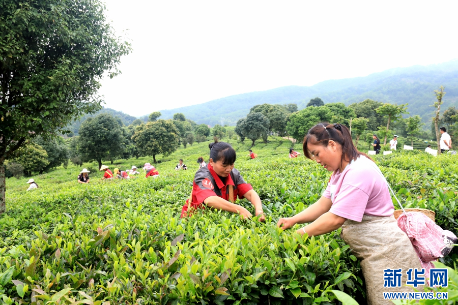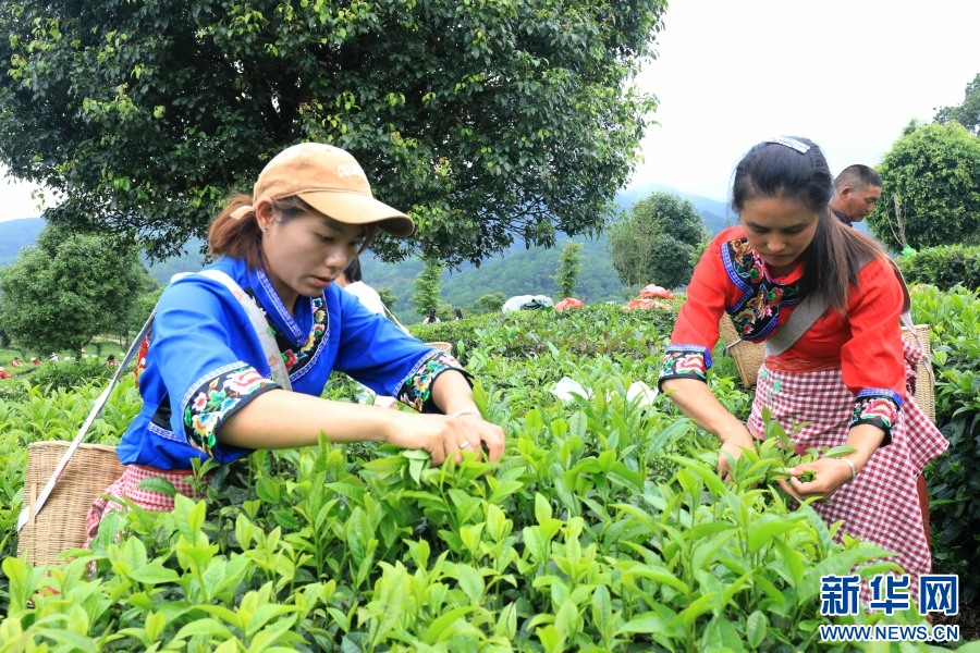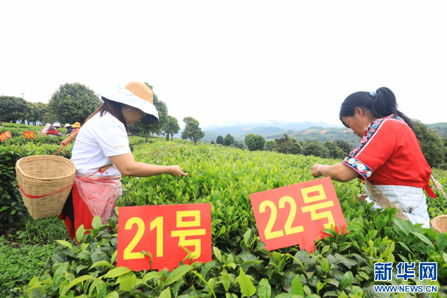 茶叶采摘竞赛现场(8月4日摄)。新华网发(宁洱县融媒体中心供图)