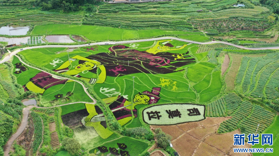司莫拉的彩色稻田(8月2日 摄)。新华网发(赵杰仁 摄)