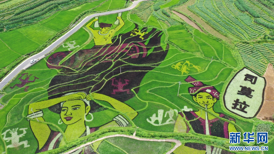 近日,在云南省腾冲市清水镇三家村中寨司莫拉佤族村,彩色稻田画迎来最佳观赏期,稻田画以田为“纸”,以稻为“墨”,描绘出一幅美好图景,尽显田园风光的魅力。(完)(邵维岑 赵杰仁)