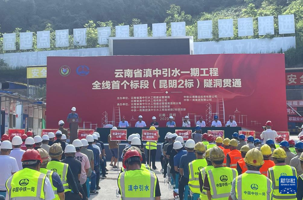 云南省滇中引水工程一期工程全线首个标段(昆明2标)隧洞贯通现场会。新华社记者杨静摄