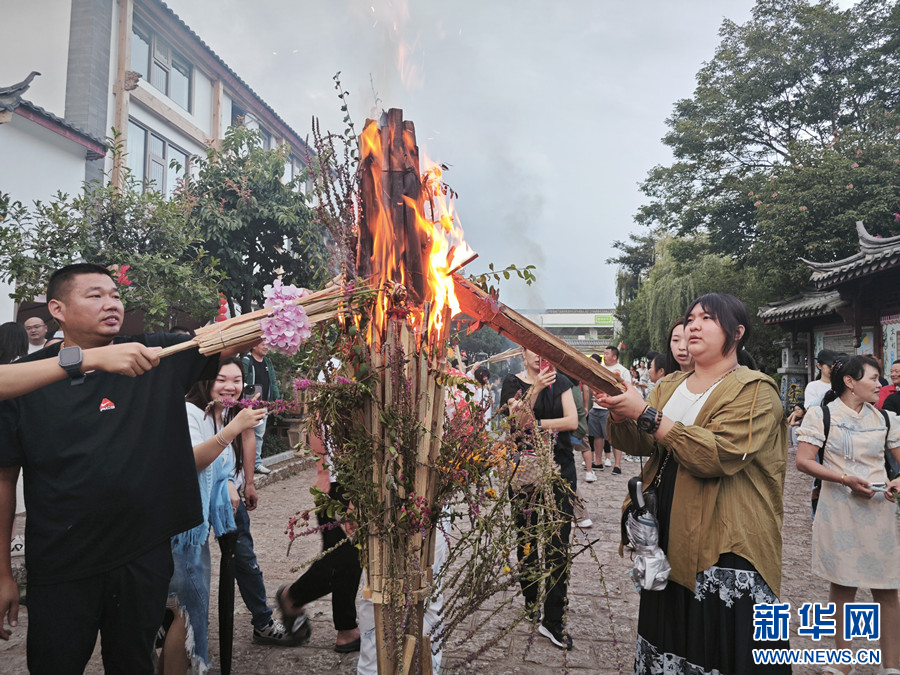新华网昆明8月12日电(李宁 和润仙 陈俊佳)每年农历六月二十五至六月二十七是纳西族的火把节,这三天是一年中最“红火”的节日。8月11日晚,丽江古城开展2023年“和美古城大研篇·花雨东林纳西火把节”系列文化活动,市民和游客一同吃长街宴、插火把花、围着火把打跳,共享民族节日的欢乐氛围,感受热情好客的民族风情。