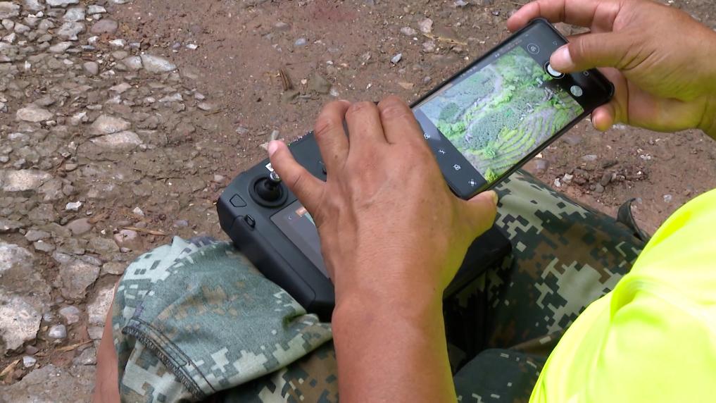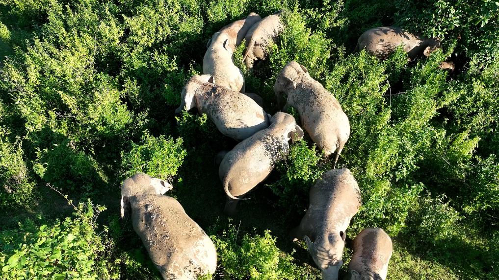 一大早,在一条公路边拿出无人机搜索后,江城县亚洲象监测员郭兴祥发现了附近正在活动的亚洲象,他赶紧让现场村民帮忙发送预警信息。