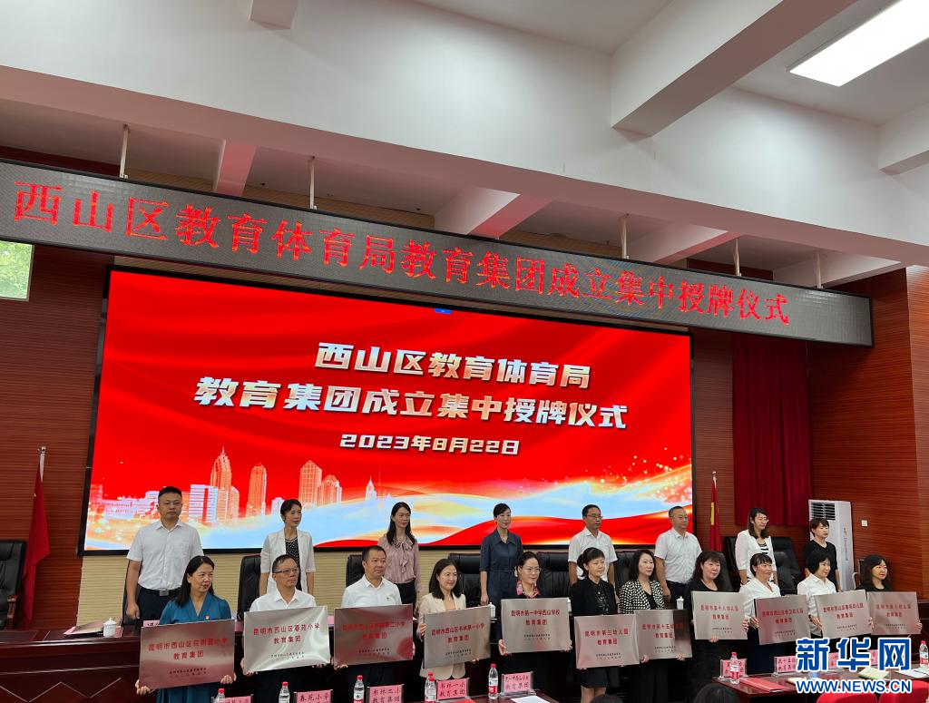 新华社昆明8月22日电(记者赵彩琳)8月22日,昆明市西山区教育体育局在昆一中西山学校举行西山区教育集团成立授牌及成员校揭牌仪式。记者从集中授牌仪式上了解到,西山区先后共成立11个教育集团。