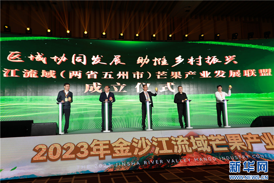 两省五州(市)人民政府携手成立金沙江流域两省五州(市)芒果产业发展联盟(8月25日摄)。新华网发(华坪县融媒体中心 供图)