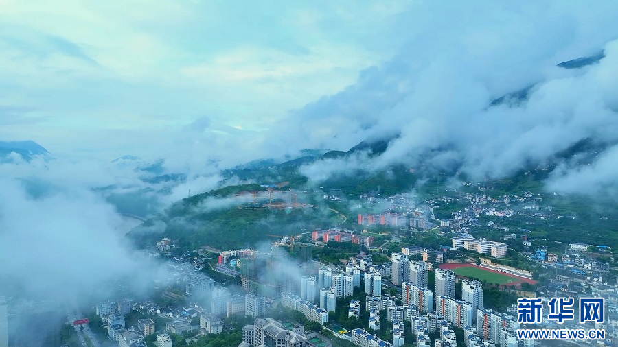 云雾下的泸水市(8月15日 摄)。新华网发 (张翔 摄)