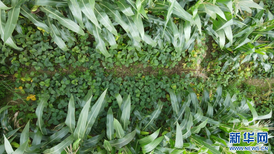 航拍镜头下玉米和大豆间套种植(8月24日摄)。新华网发(施甸县融媒体中心供图)
