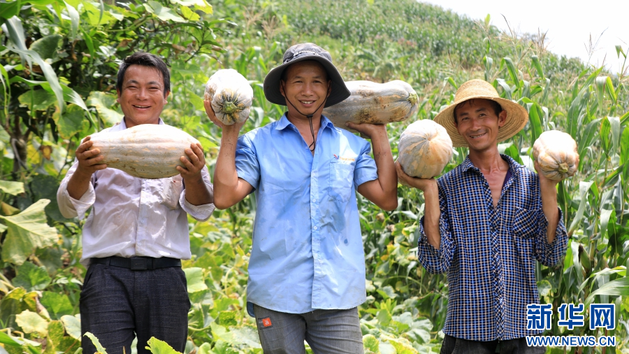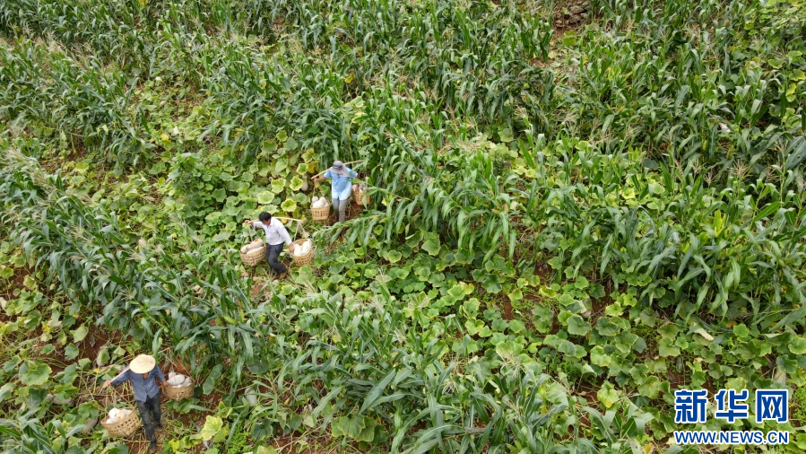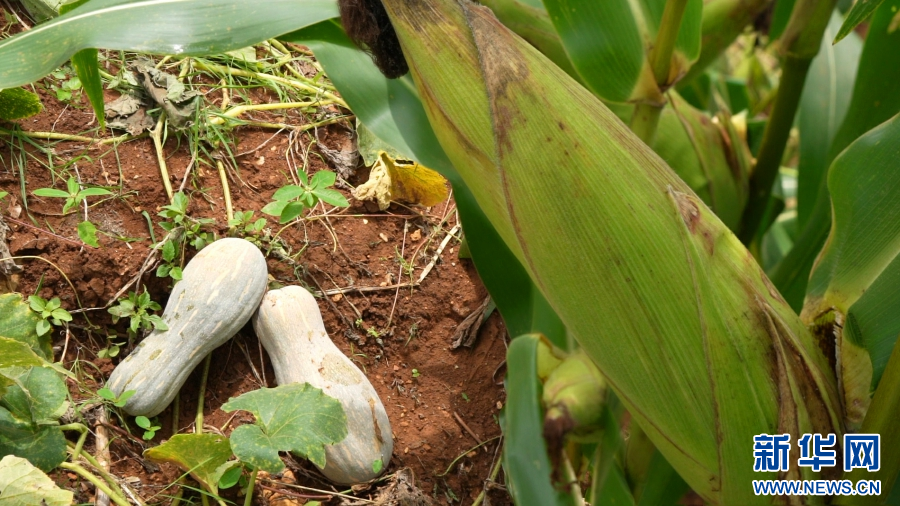 玉米和南瓜间套种植(8月24日摄)。新华网发(施甸县融媒体中心供图)