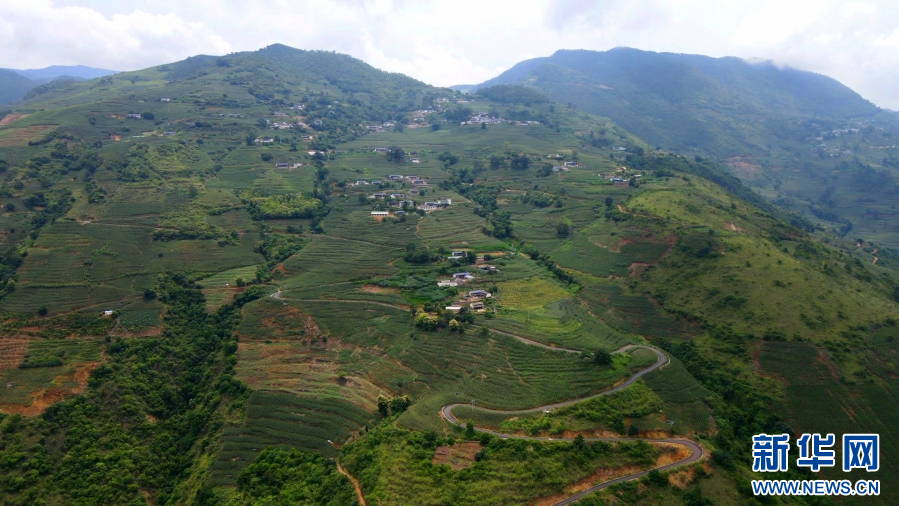 航拍镜头下施甸县何元乡一景(8月24日摄)。新华网发(施甸县融媒体中心供图)