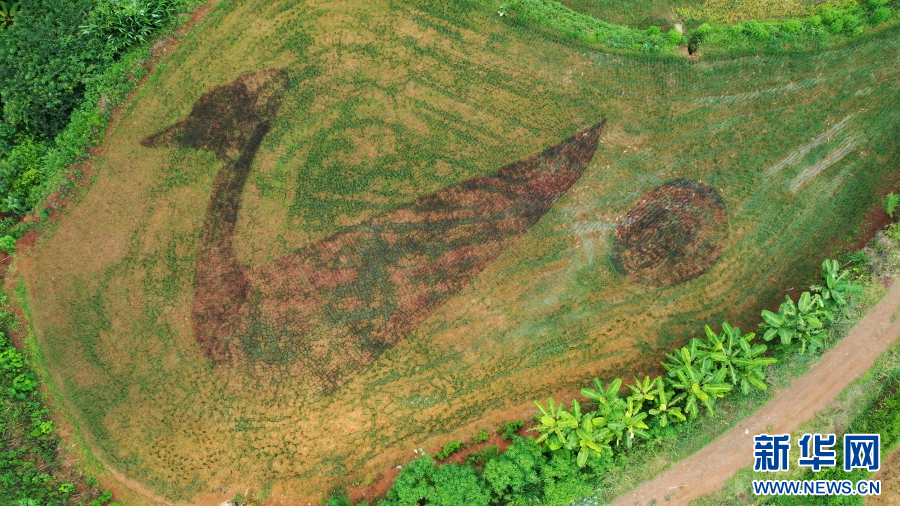 高空俯瞰德化镇干田村的彩色稻田,一簇簇紫红色和黄色的秧苗镶嵌在绿色的秧苗中,拼凑出“同心圆”“民族团结一家亲”“3815”以及一些乡村元素的图像和字样,装点着田野。据了解,这片彩色稻田有5个品种,共50亩,将在十月下旬迎来丰收。(完)(陶平 高夏龙杰 鲁红梅 刘梦星)