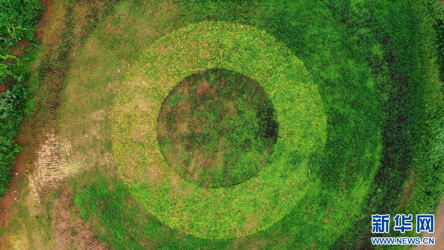 彩色稻田里的“同心圆 ”(8月22日摄)。新华网发(陶平 摄 )
