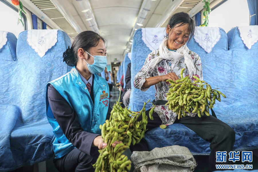 新鲜的瓜果蔬菜,是“慢火车”上的“常客”,小小的车厢就像一个流动的菜市场,烟火气十足(摄于8月24日)。新华网发(杨紫轩 摄)