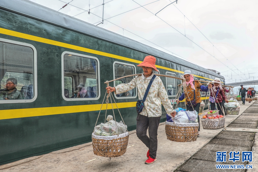 除了“拾菌人”,沿途种蔬菜、贩水果的老乡们,也都会选择搭乘“慢火车”去售卖(摄于8月24日)。新华网发(杨紫轩 摄)