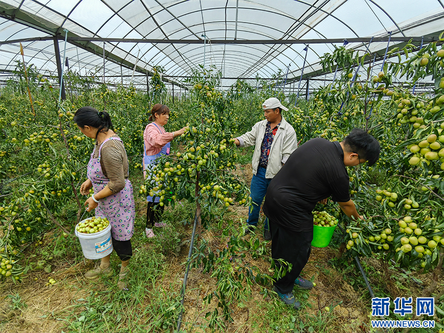 近日,在云南省曲靖市沾益区金龙街道玉光社区枣子种植基地,人们正忙着采摘枣子。