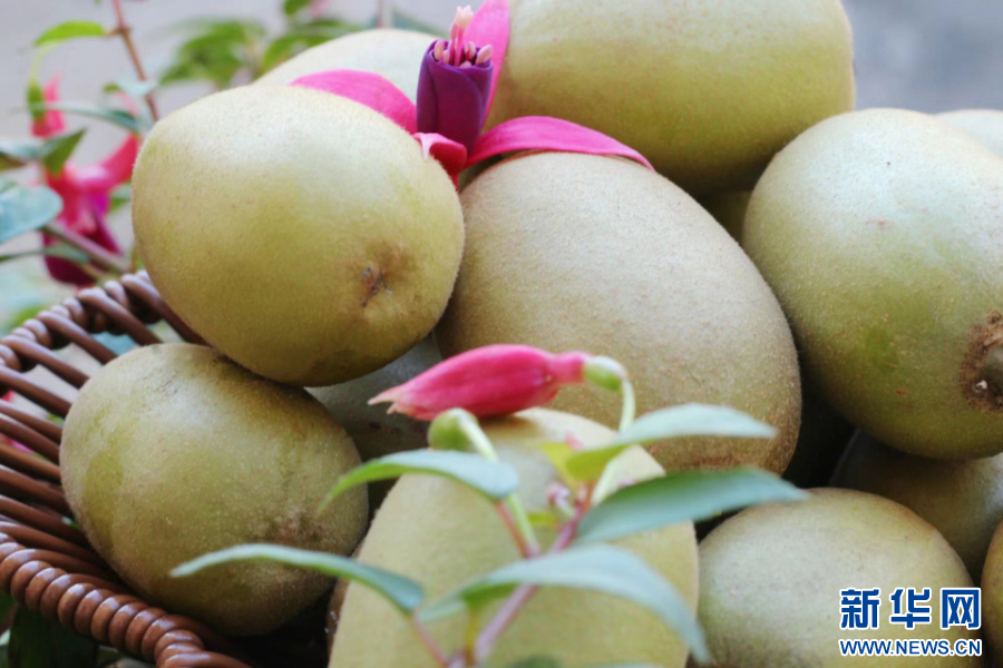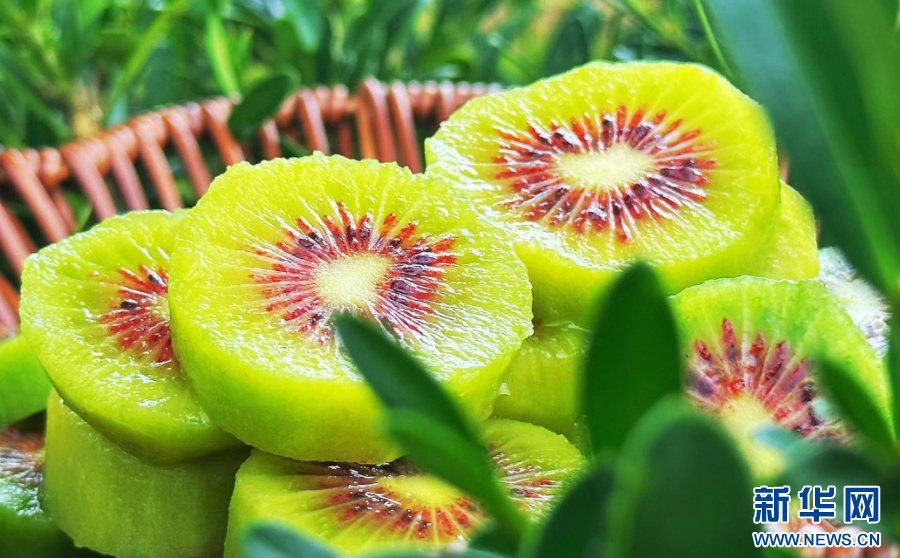 红心猕猴桃个大味甜(9月1日摄)。新华网发(何丽荣 摄)