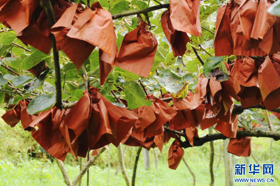 红心猕猴桃喜获丰收(9月1日摄)。新华网发(何丽荣 摄)